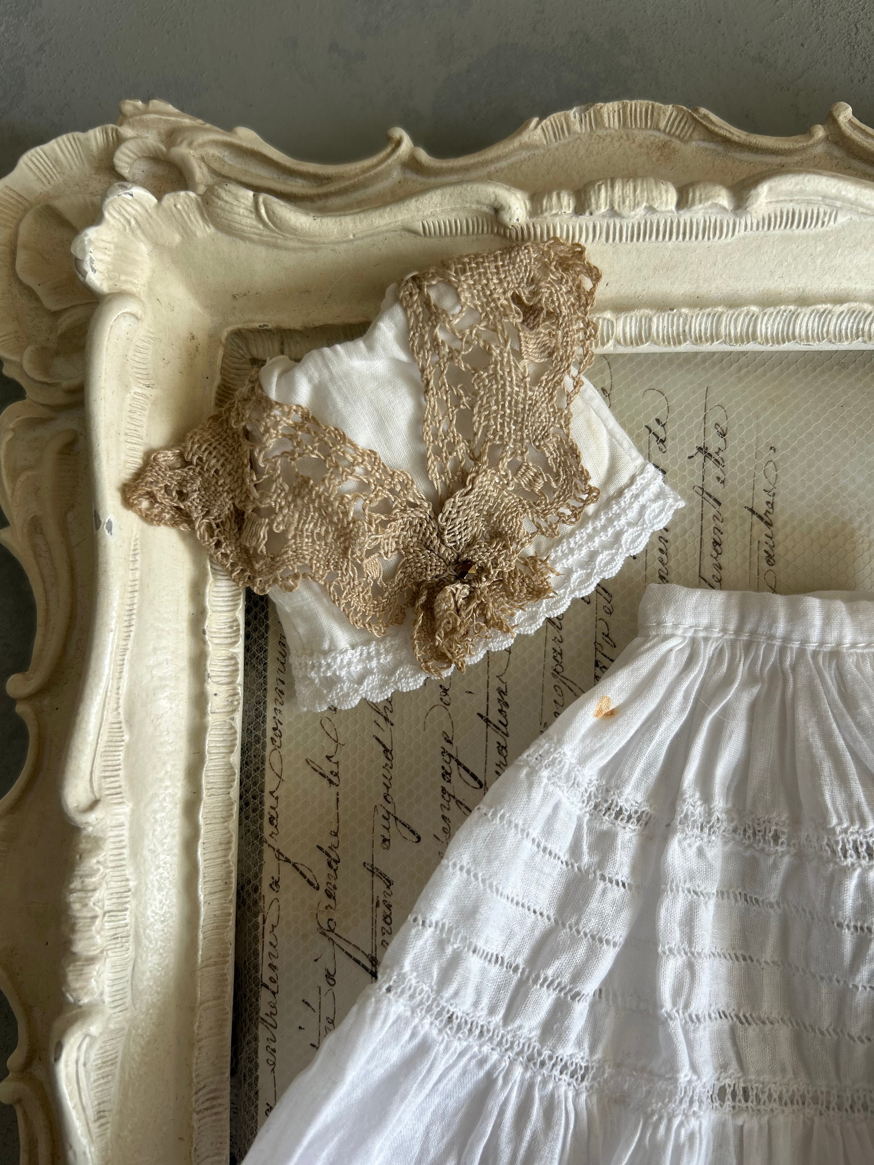 生地部分もアンティークのワンピースを裁断した生地を使用しております