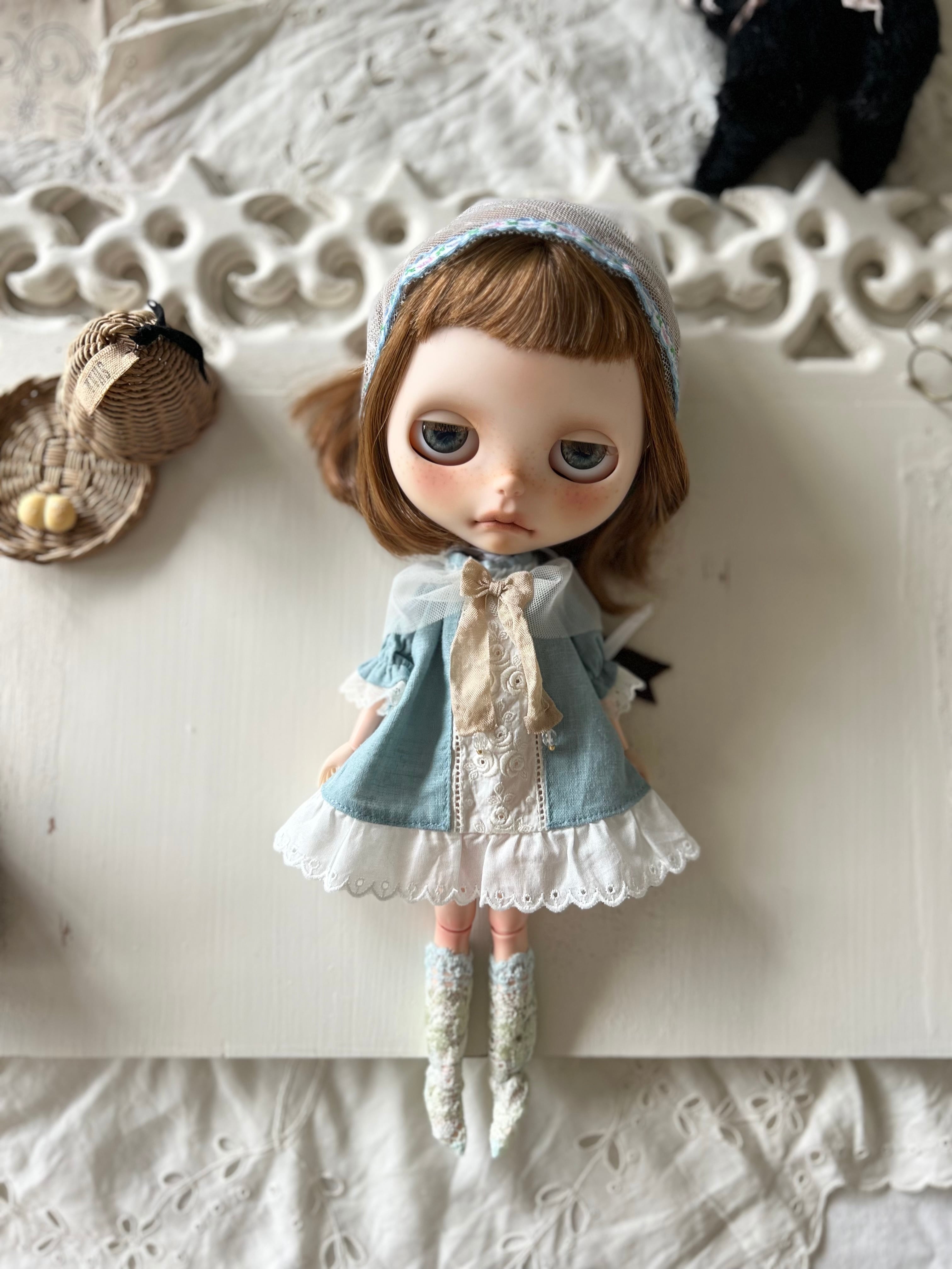 ワンピースの全面はアンティークレースとなります