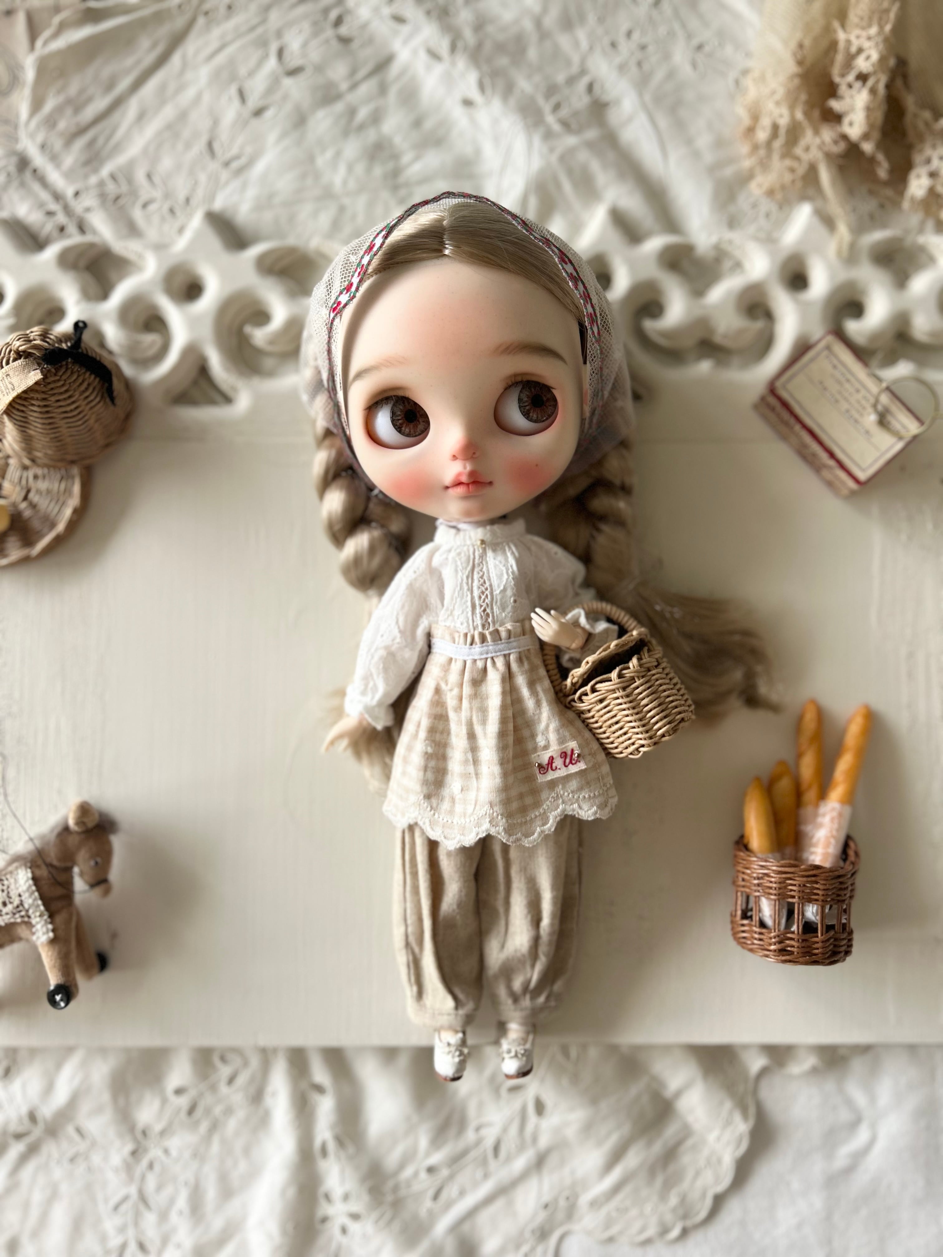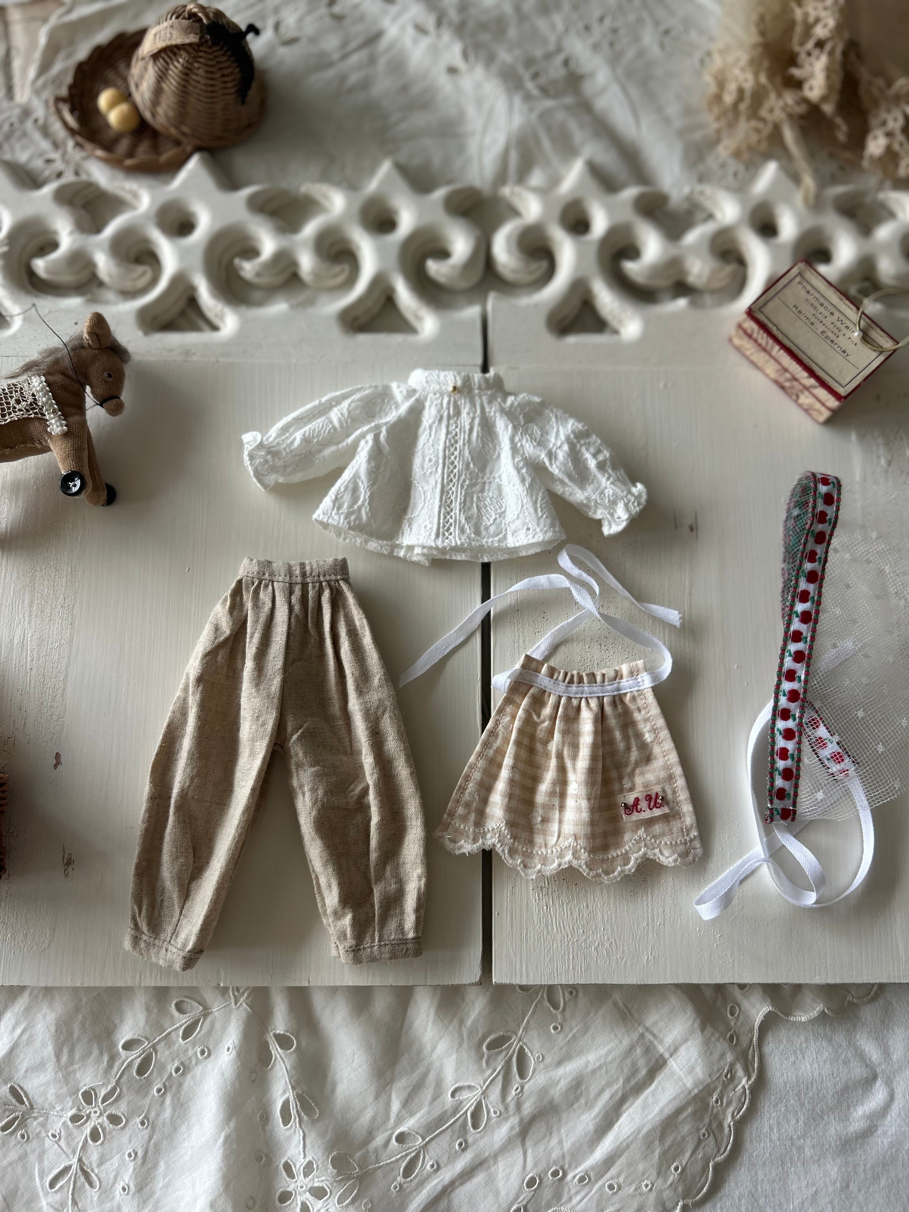 ブラウスはハートの刺繍の入った生地を使用