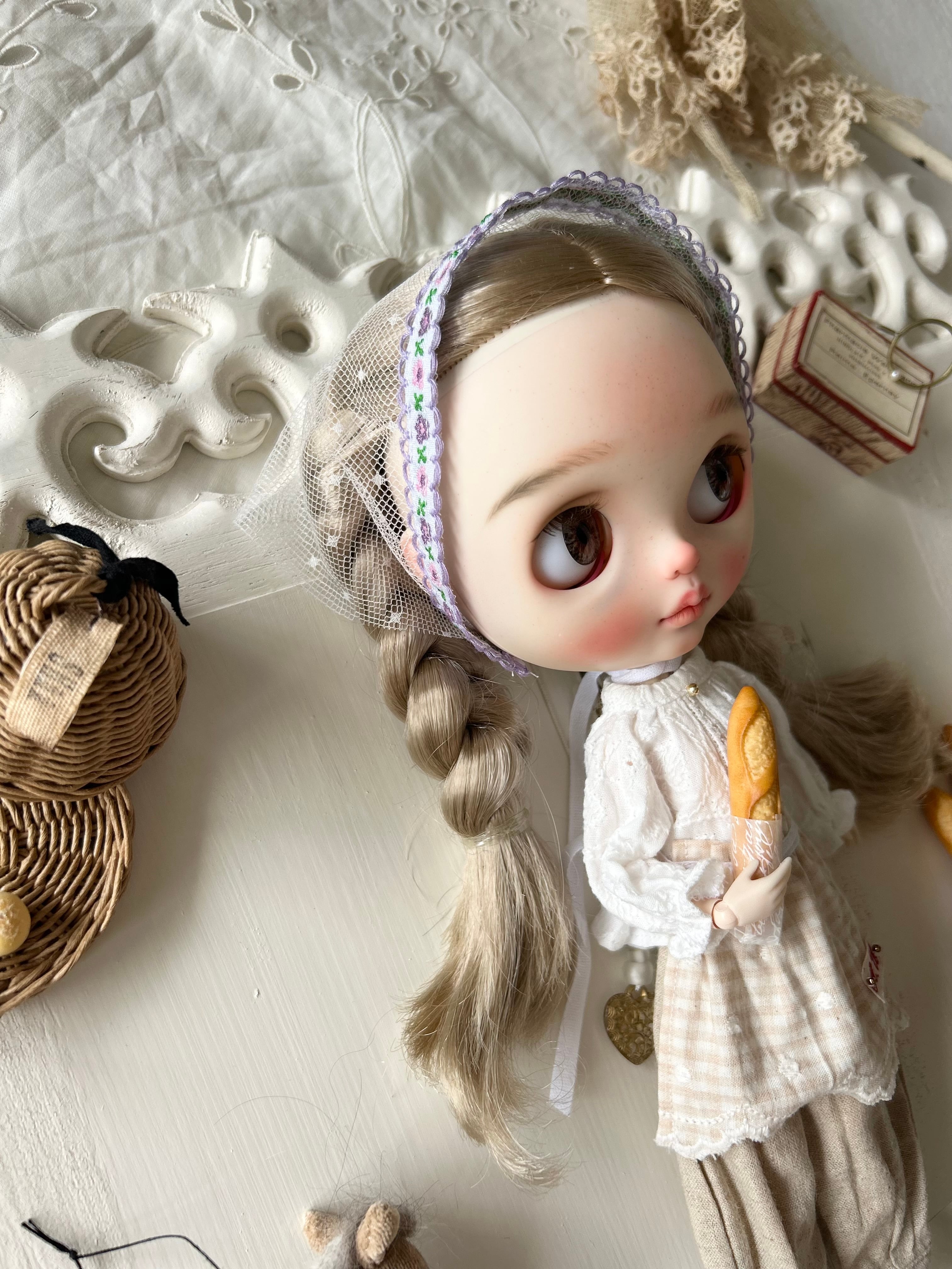バブーシュカはパープル系の花柄刺繍テープになります。りんごは4-22になります